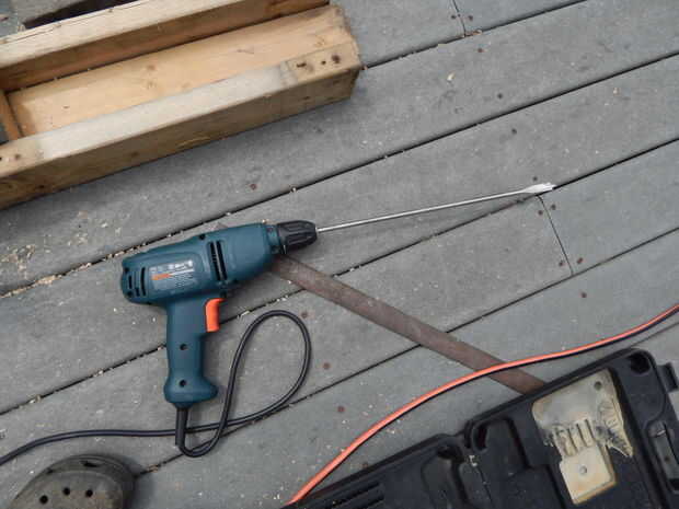 He utilizado un taladro de mano con una pala de 1/2 pulgada broca para taladrar los agujeros. La broca que tuve fue de aproximadamente 1 pie de largo. En retrospectiva habría sido mejor tener una versión más corta.