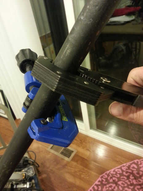Al llegar a través de, usar el escariador en el cortador de tubos y limpie las rebabas del tubo, tenga cuidado de no cortar su mano como yo lo hice.