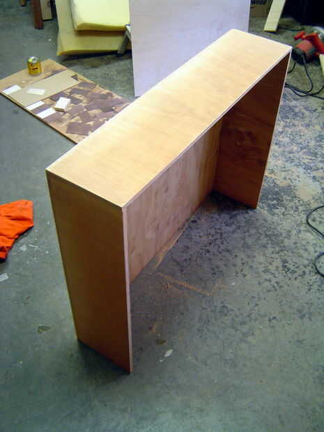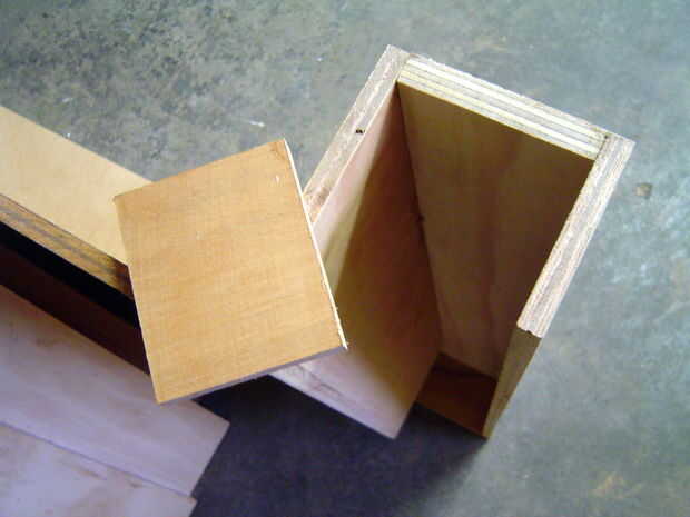 Tenía restricciones de diseño debido a los tamaños de los pedacitos de madera que tenía. La pieza más grande fue de 850 x 800 mm, y la diapositiva era 650 mm de largo, por lo que la mesa terminó de 850 x 650 mm. He hecho 150 mm de profundidad, ya miraba sobre derecho. La base y el lado de la canaleta 90 mm, una vez más, una opción de globo ocular y una vez montado, hecho para una zanja de 90 mm de ancho y 75 mm de profundidad (debido a la manera superpuestas las piezas, y porque la base de la zanja se hizo con madera contrachapada de 5/8"). RIP a la anchura derecha, corte a la longitud y montar con pegamento para madera y una clavadora. Me encanta a mi clavadora - los clavitos por sí mismos son débiles, pero hacen de montaje muy rápido y preciso utilizando pegamento para madera y eliminar la necesidad de abrazaderas. Los orificios resultantes son perforados por debajo de la superficie y son fáciles de llenar. Añadir piezas para el canal detener la caída de ladrillos.