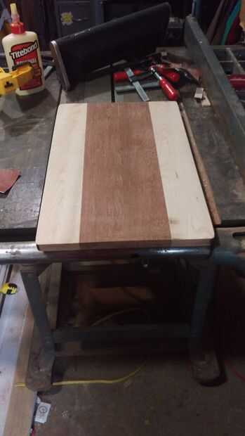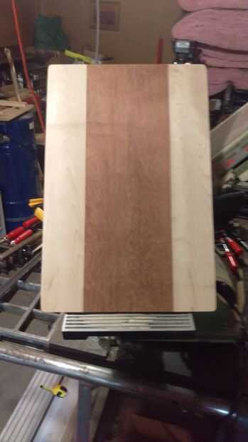 el año pasado al pasar algún tiempo con mis suegros había hecho un comentario acerca de querer hacer una tabla de cortar. Mi suegra rápidamente comentó algo como"oh que gran"... Me acordé de eso. Este año fui por delante y había hecho su uno de