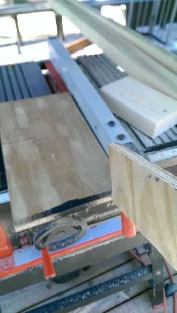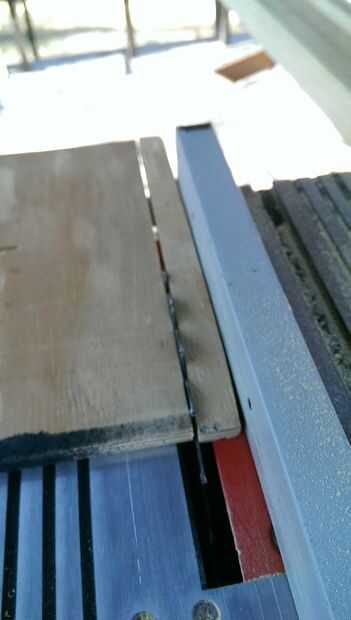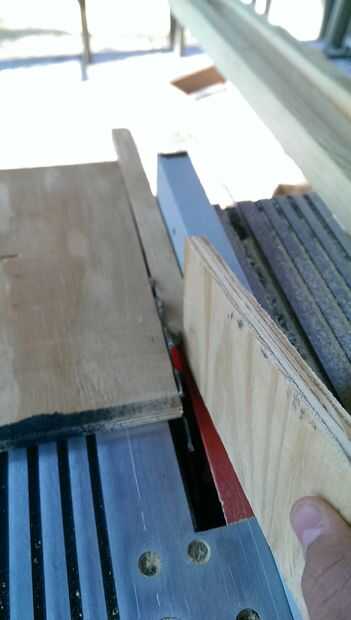 Para rasgar las tiras, se puede utilizar una sierra de cinta o un Hanon. Para su sierra, establece el fench en unos 7/8" de la hoja. Para la Sierra de mesa, ajuste la guía la misma distancia, 7/8" y altura de la cuchilla en aproximadamente 1". RIP sobre tiras de 15-20 y hacerlos lo más consistente posible. Puede hacer esto cortando rápidamente y no dejar de corte mid. También estoy usando un pedazo de madera para ayudar a empujar todo el camino fuera de la rotación de la hoja para no disparar nuevamente y le golpeó.