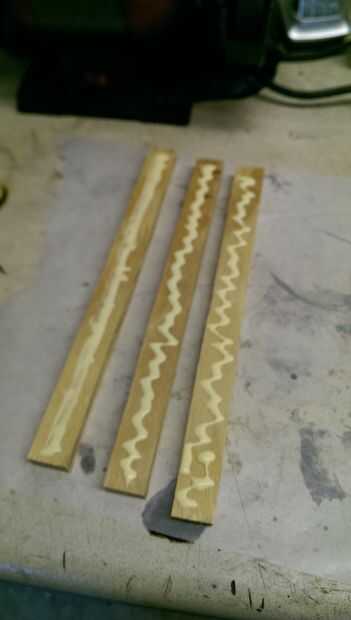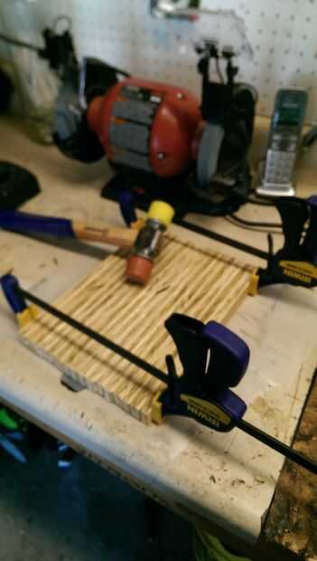 En primer lugar, colocar las tiras y disponerlas para la altura de las lagunas son lo menos posible. Esto hará que el cepillado sea más fácil en el futuro. A continuación, recoger sus abrazaderas. Cierre a un punto donde podrán apretar tu madera rápidamente pero no con una molestia. También es una buena idea hacer todo esto en un trozo de papel de cera. Ahora, coloque las tiras de lado hay y aplicar el pegamento. Es una buena idea poner todo al lado del otro y aplicar a todas a la vez. Asegúrese de dejar a uno sin cola, como se trata de una pieza final. Luego, apilarlos detrás la manera que tenía originalmente y sin apretar la abrazadera. Pone en el papel de cera y golpéelo con un martillo de aplanar las tiras y apretar las mordazas. Ponerlo al sol para secar.
