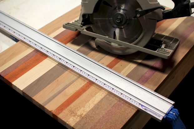 El tablero de corte que hice era demasiado grande para caber en una mesa VI trineo o mis ingletes deslizante para cortar el borde, usé una sierra circular y borde recto en lugar de cortar el borde irregular.