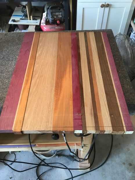 encontrar maneras de utilizar hasta restos de madera en la tienda es siempre un desafío.  Esta tabla de corte de madera de desecho es un gran proyecto porque está hecha de una gran variedad de diferentes tipos de madera que son todos una panda de dif