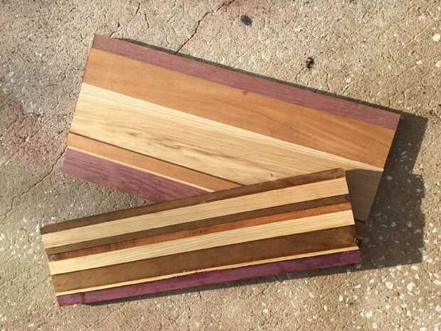 Usted puede hacer un tablero de corte de aspecto impresionante y tarda solamente unos recortes de madera para hacerlo. ¡ Mira cómo he utilizado 4 recortes de nogal, cerezo, caoba y arce para hacer de este diseñador en busca tabla de cortar!Materiales