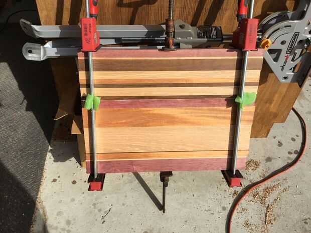 Este es un proyecto bastante simple y divertido, todo lo que necesitas es un montón de piezas de madera de grado de alimentos y el pegamento en una forma áspera entonces forman una tabla de cortar bien.1) toma las tiras de madera y dimensión con Sier