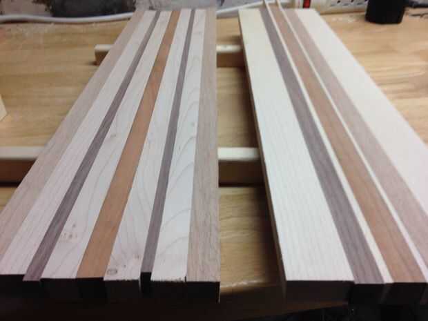 Usted puede hacer un tablero de corte de aspecto impresionante y tarda solamente unos recortes de madera para hacerlo. ¡ Mira cómo he utilizado 4 recortes de nogal, cerezo, caoba y arce para hacer de este diseñador en busca tabla de cortar!Materiales