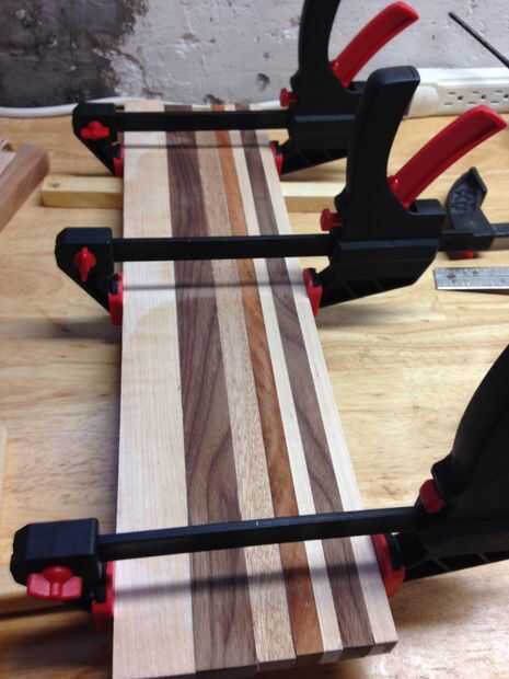 Este es un proyecto bastante simple y divertido, todo lo que necesitas es un montón de piezas de madera de grado de alimentos y el pegamento en una forma áspera entonces forman una tabla de cortar bien.1) toma las tiras de madera y dimensión con Sier