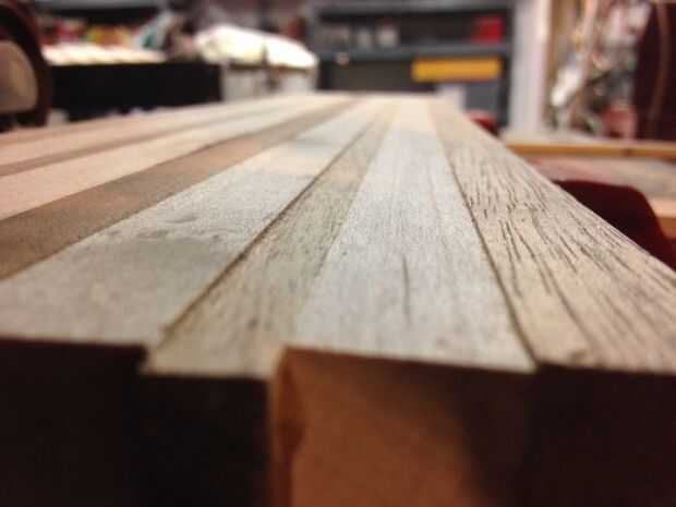 Este es un proyecto bastante simple y divertido, todo lo que necesitas es un montón de piezas de madera de grado de alimentos y el pegamento en una forma áspera entonces forman una tabla de cortar bien.1) toma las tiras de madera y dimensión con Sier
