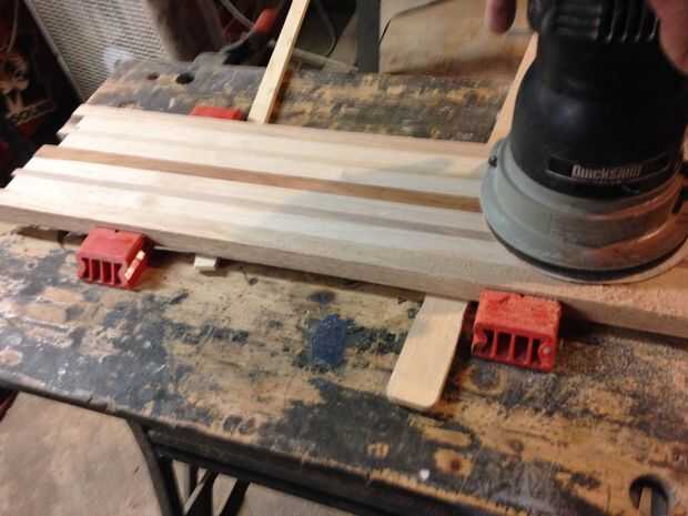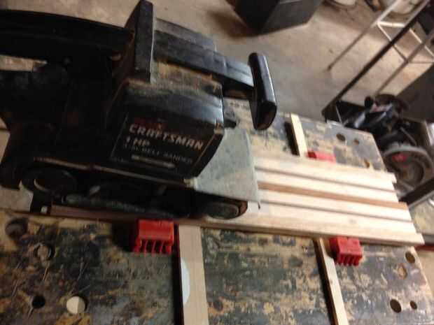 Herramientas eléctricas y la paciencia necesaria para este paso. No tengo un cepillo, pero tengo una lijadora de banda y una lijadora de Palma orbital aleatorio. Había utilizado la lijadora de banda primero con lija de grano 60. La lijadora de banda hace el corte pesado. Luego seguí con 60-120-220 con la órbita de la arena. Dejé los tableros de 21 pulgadas de largo como su más fácil utilizar una lijadora de banda en un pedazo más largo que puede sujetarse en el compañero.
