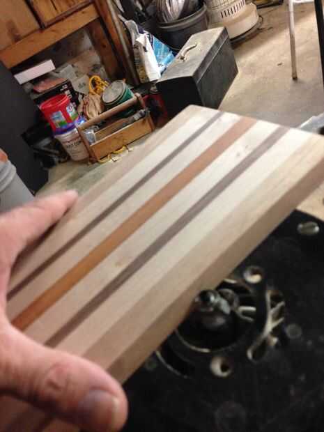 Usted puede hacer un tablero de corte de aspecto impresionante y tarda solamente unos recortes de madera para hacerlo. ¡ Mira cómo he utilizado 4 recortes de nogal, cerezo, caoba y arce para hacer de este diseñador en busca tabla de cortar!Materiales