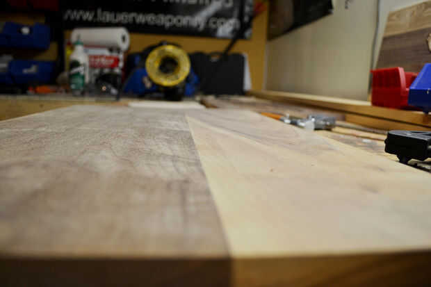 Después de que el pegamento se establece hasta te darás cuenta (si usted tiene pedazos de madera de diversa altura como yo) que la board tiene estrías por todo el lugar. Necesitamos hacer esta cosa plana antes de hacer cualquier otra cosa.