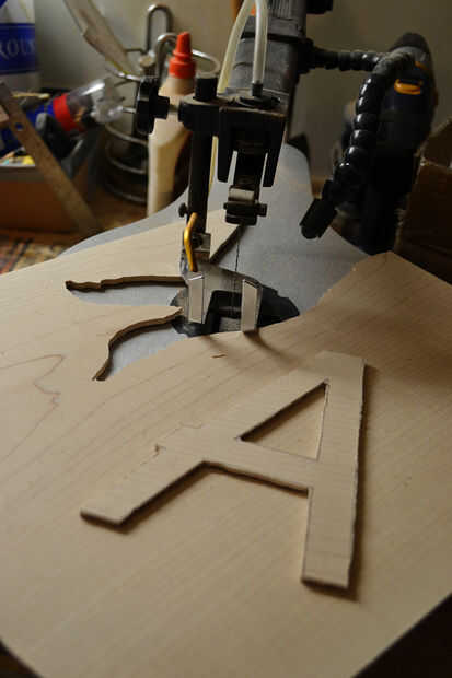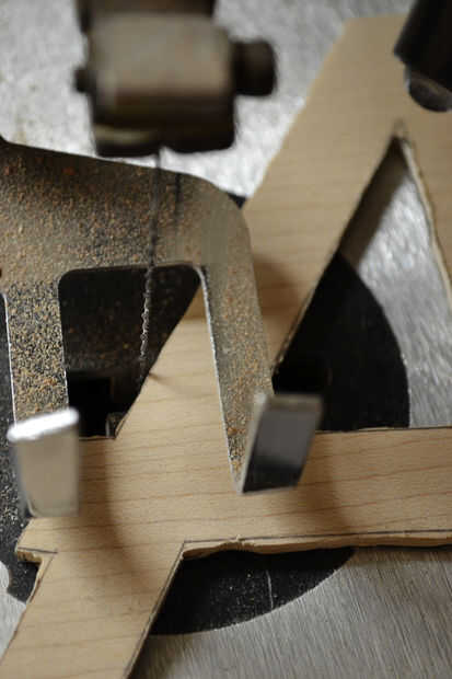 Su juego de preparación, que sea listo para la batalla, yo uso una sierra de calar de mesa para mi proyecto. Después de cortar el diseño en papel, coloque las plantillas en el arce duro y trazar los contornos con un lápiz.