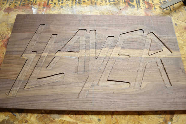 Ruta hacia fuera de cada uno de sus diseños, teniendo cuidado de no pase fuera de las líneas y viendo sus rincones en su diseño. Una vez que termines, cubierto en polvo de la sierra y sentirse bien acerca de usted mismo, asegúrese de volver atrás y limpiar las esquinas con sus cinceles.