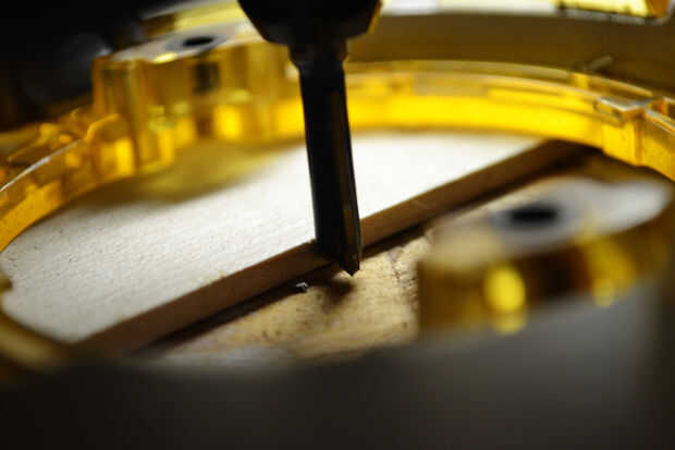 Establece su broca paso a ser un poco menos el grueso de su embutido 1/8" de espesor. Tiro para 1/6" profundidad de penetración en la mía. Bloqueo abajo y prepárate conseguir buena y polvoriento (amor que huele...)