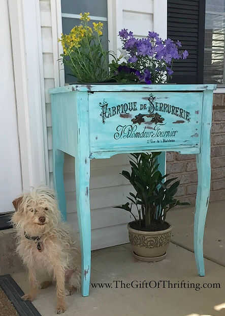 http://www.thegiftofthrifting.com/Painted-Sewing-Table-turned-planter/
