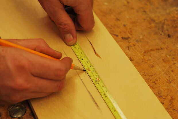 Cedro madera de crecimiento tabla de regla usando técnicas de quema de madera