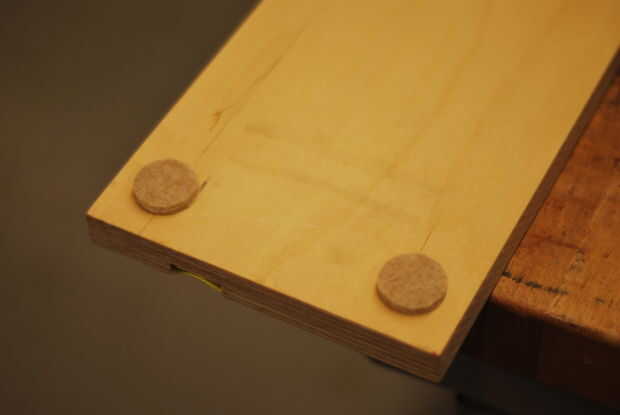Una vez el pegamento se haya secado puede colocar un gancho de cuadro de imagen a la parte trasera.  A la altura de 5 pies de la parte inferior de la Junta y haga una marca, entonces utilice una cinta para hacer una marca en el centro de la Junta.  Fije el gancho alrededor de este punto central.   Añadir las dos almohadillas en la parte inferior del tablero para no marca la base de la pared.