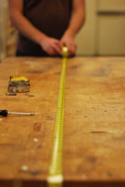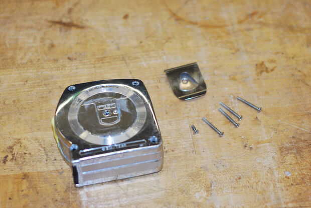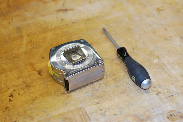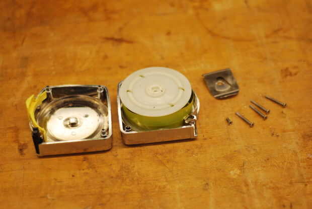 Desmontar con cuidado la cinta métrica. Comience por quitar los 5 tornillos que sujetan la carcasa juntos. Asegúrese de mantener una mano sobre el caso para no reventar abierto. Abra la cubierta lentamente, para asegurarse de no saltara. Retire la bobina de la cubierta (que es la parte blanca) y puso un dedo en la cinta para mantenerlo enrollado. Lentamente desenrolla la cinta en un lugar seguro (Recuerde es tan larga como la cinta dice que es, por lo que es mejor hacerlo en el garaje o en el exterior).