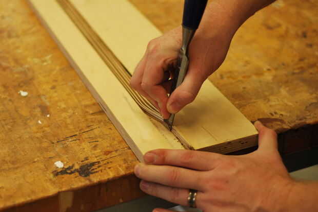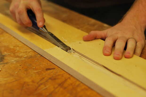 Utilizando un cincel eliminar los restos de la ranura.  Esto puede tomar más trabajo dependiendo de cuántos pasos hiciste.  Una vez que se elimina la ranura hacia fuera está listo para cortar a la longitud
