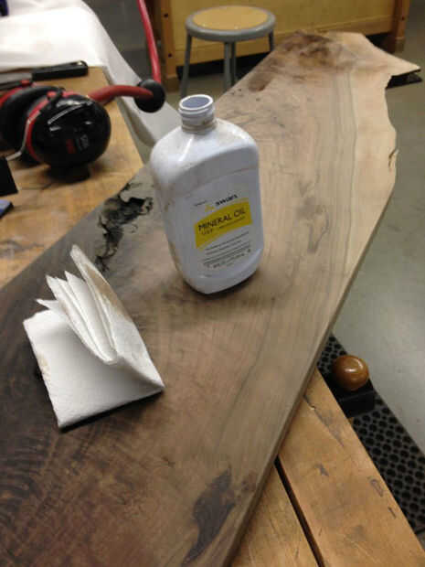 Hay muchos acabados diferentes que podrían ser elegidos para el nogal. Quería mantenerlo simple, así que fui con aceite mineral. Simplemente aplique una pequeña cantidad en un trapo y frota. Es muy tentador a la descarga de este material en pero trate de no por lo que eres capaz de lograr una capa uniforme y ligera.