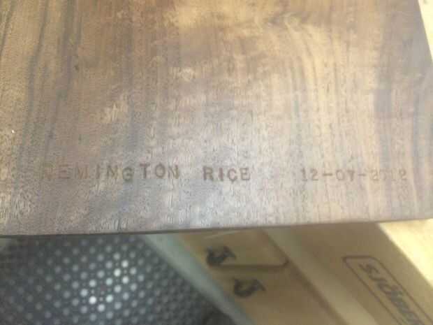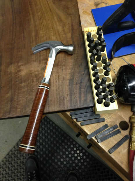 Me decidí a personalizar este palo de crecimiento especialmente para mi hijo poniendo su nombre y fecha de nacimiento en la parte inferior. Simplemente seleccione los números y letras que desea utilizar y luego darle un toque medio de su martillo para deboss en la madera. Trate de hacer las cosas bien la primera vez como un segundo giro raramente funciona.