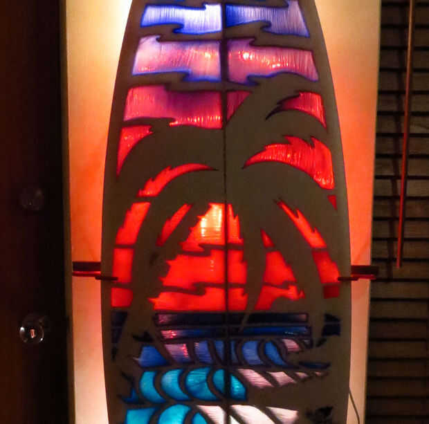 Son piezas puramente esculturales que combina arte, surf y reciclaje, vidrio de la mancha. Son hermosas y son bastante baratos producir así que si usted no tiene ningún otro uso para crapped hacia fuera vieja tableros cortos y luego ir para él. Tengo otros en