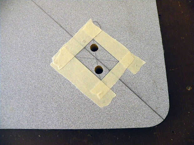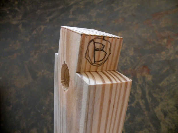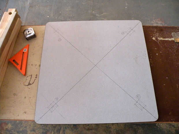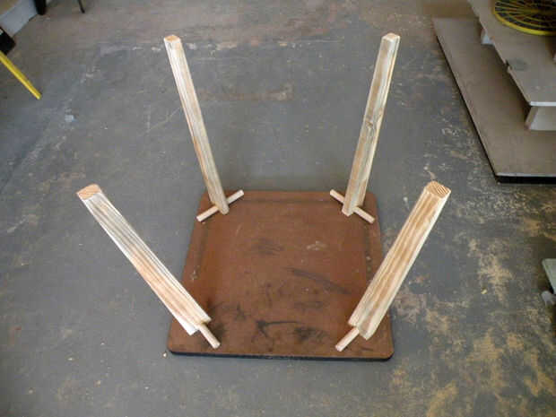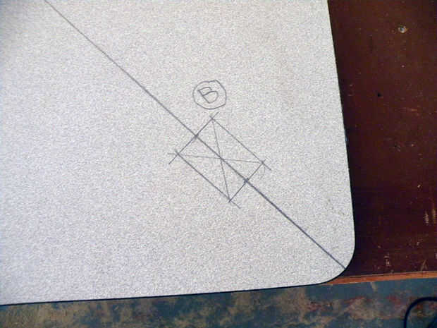 Conectar las esquinas, creando una "X". Medir a lo largo de la "X", en de las esquinas, alrededor de 6". Centro una muesca, el tamaño exacto de la pieza proyección de sus piernas. Etiqueta cada hendidura y cada pierna, teniendo en cuenta las irregularidades pequeñas en dimensión, por lo que la tabla siempre encaja firmemente más adelante.