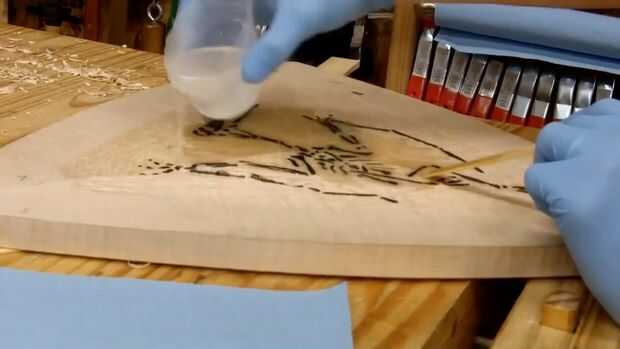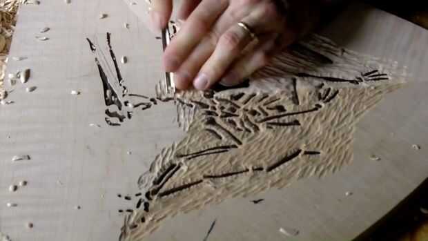 Utilice un indicador de talla para excavar alrededor de los fósiles simulado. Su objetivo es hacer que se vea como los huesos fueron enterrados en la madera, y los expone como un arqueólogo tendría, así que este concepto guía su mano mientras trabajas. Asegúrese de que toda la superficie tallada se ha reducido en el plano original de la tabla, no quedará bien si la madera es empujando para arriba con el epoxi.
