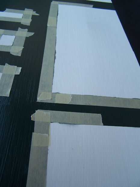 Cubre las piezas que usted no quiere conseguir pintura todo ellos con papel de desecho y asegúrelos con cinta adhesiva. Me pareció más fácil poner demasiada cinta al principio, luego suavemente perfore con un cuchillo afilado y tire el exceso. Es mucho más fácil conseguir esquinas crujientes de esa manera.