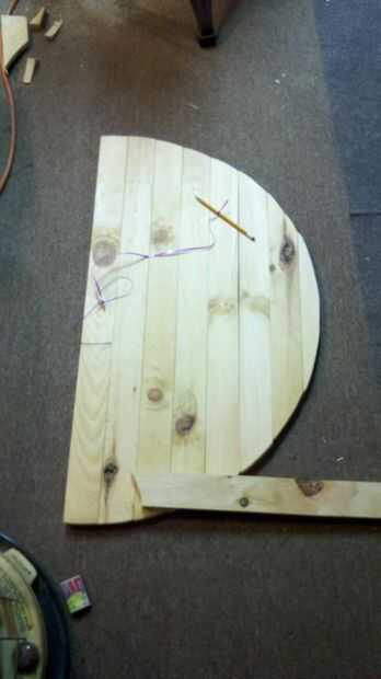 a continuación es la parte simple su lijadora arena hacia abajo y liso arriba e incluso hacia fuera de la parte exterior del escudo para que sea redonda. Si el exterior es demasiado irregular para una arena rápida puede utilizar una serie de herramientas para igualar hacia fuera. usé una herramienta de carpintero que solo raspaduras por exceso de madera.