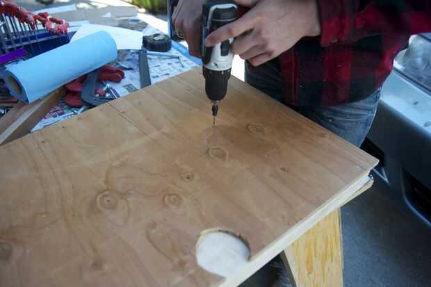 Luego hicimos una plantilla de contrachapado que nos jodidos a los pedazos más grandes de la cereza y del arce que emparejar los ángulos en cada uno. Esta manera, perfectamente complementan uno al otro.