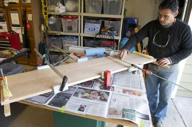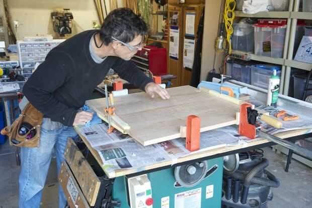 Luego corte transversal de ese pedazo largo por la mitad y pegados encima de las dos piezas así que tuvimos una plaza de gran tamaño 2 x 2 pies. También utilizamos galletas juntas en este paso (usando 1 galleta por cada pie de tablero). Se utilizó una sierra habilidad para cortar la plataforma al finales dimensiones de 2 x 2 pies.