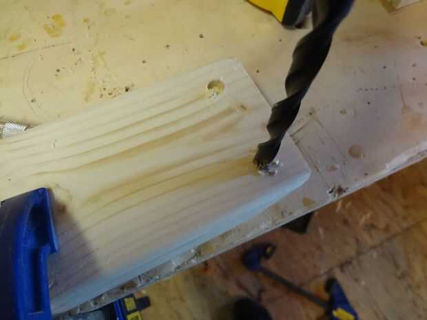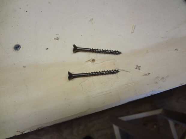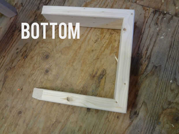 1/8 de pulgada agujeros del taladro en cada esquina desde el lado. Avellanado con un 3/8" bit por lo que puede añadir enchufes más adelante. Hacer por separado las piezas superior e inferior y coloque la pierna en la parte inferior. Los tornillos que usa son tornillos porque son buenas y resistentes.