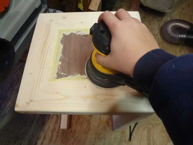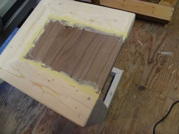 Poner parche de madera los huecos en los tres lados del panel de nogal y arena una vez que esté seco. El resto de la tabla de la arena hasta que es agradable y suave.