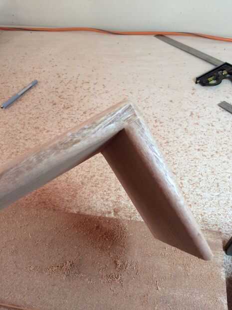 Simplemente puse un pedazo de la acción hacia abajo en el borde de la mesa de trabajo para mi pieza flota en la superficie del Banco, ajustar el stock y la pieza de trabajo por lo que la superficie de cepillado está todo disponible y vaya en él.