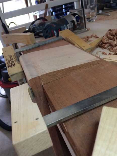 Nota sobre abrazaderas: tenemos una tendencia a apretar en exceso las abrazaderas, potencialmente dañar la madera... Así que si sientes absolutamente la necesidad de sujetar el infierno fuera de la pieza, utilizar algún cauls sujeción (pequeños bloques de madera) entre los extremos de la abrazadera y la pieza, esto distribuye el bit s de presión. Prefiero utilizar sargentos, rápida, fácil y controlable.