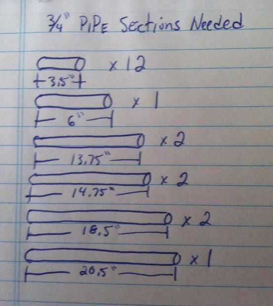 Corte el tubo de PVC de 3/4" en las longitudes y cantidades siguientes: