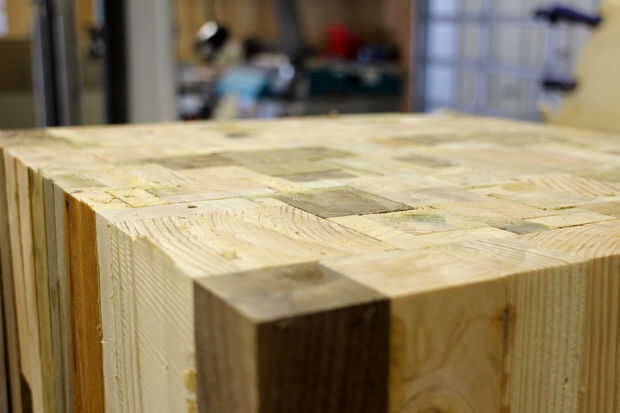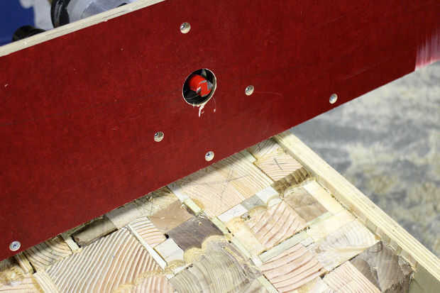La profundidad de router se configuró para sacar aproximadamente 1/2", entonces el router fue cuidadosamente colocado en los rieles y trabajó alrededor de toda la superficie de la mesa. Esta tabla se llevó unos 30 minutos al router.