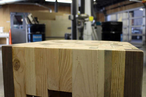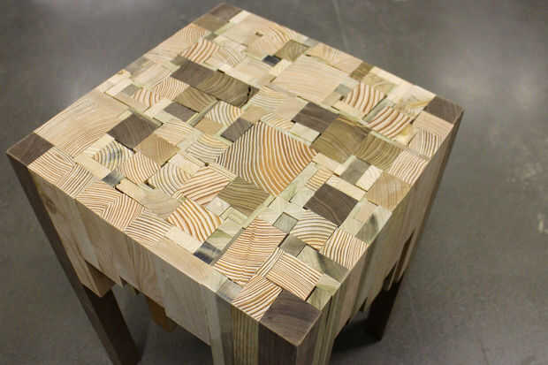 se trata de una mesa final, de componente impreso "latas". Usted puede tener una nueva tabla todos los días cambiando la posición de los colores o patrones en las "latas". Luces del LED o detectores de movimiento pueden colocarse den