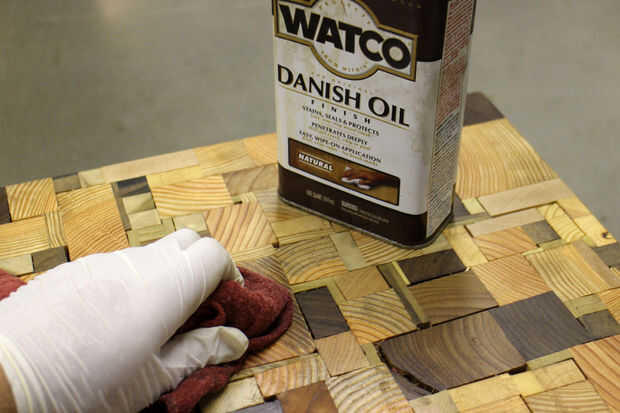Para sellar y proteger la mesa y hacer realmente la veta pop, usé unas pocas capas de aceite danés. Usar equipo de protección y de trabajo en un área bien ventilada, aceite danés fue agregado a un trapo y frotado en la tabla. Después de la aplicación, exceso de aceite danés fue limpiar. Una segunda capa se aplica después de aproximadamente una hora.