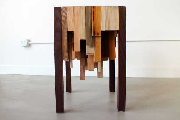 se trata de una mesa final, de componente impreso "latas".  Usted puede tener una nueva tabla todos los días cambiando la posición de los colores o patrones en las "latas".  Luces del LED o detectores de movimiento pueden colocarse den