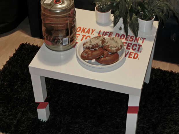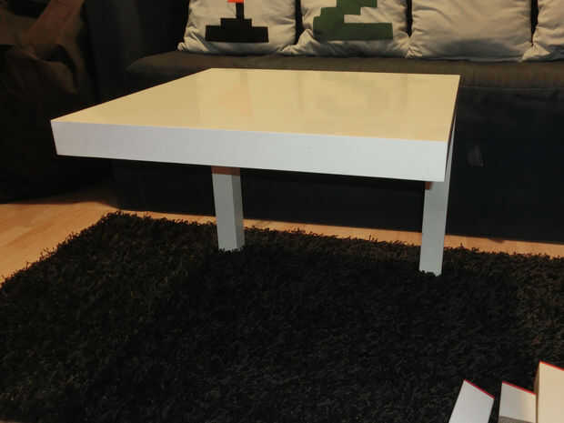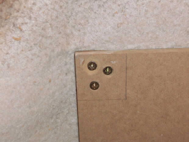 Quité las fibras criticaban por debajo de las piernas, con el fin de obtener mejor estabilidad. Atornille las patas a la mesa y luego a la placa MDF (Asegúrese de que la cabeza del tornillo no sobresalga, o pueden rayar el piso). Asegúrese de que las dos patas largas la mesa y colocar las dos piernas más cortas.