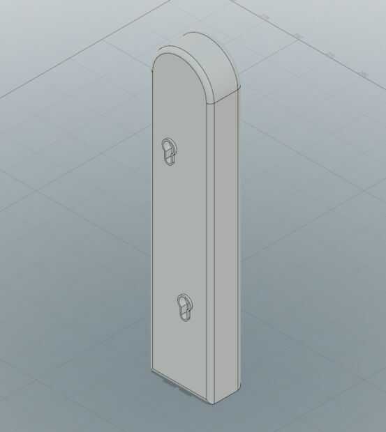 Tomar la tira de la energía y deslice los dos tornillos en las ranuras en la parte posterior para marcar el interior del panel de la izquierda. Deslice los tornillos y parcialmente perfore los divots marcadas. Debe deslizar la tira sobre ellas. Retire la tira de la energía por ahora.