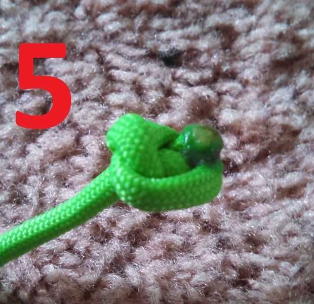 4. Vuelva al reves y el paracord a través del canal de 1/2" para una cadena de tirón del hilo de rosca.