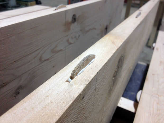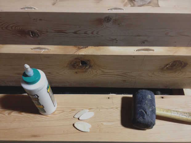 Utilizar un yeso escuadra o regla para ejecutar una línea a través de todas las tablas de cada 10". Marcar las tablas A, B, C y así sucesivamente. Use una ensambladora (galleta) para hacer las ranuras de cada marca. Inserte las galletas en un lado de cada placa con un poco de pegamento para madera, después cepille los bordes funcionamiento de las juntas con una capa fina y uniforme, de cola para madera. Juntos, la abrazadera con un mazo para convencer a las juntas cuando mal alineado. Empiece en un extremo y hacia el otro, utilizando trozos de madera para proteger los bordes de la superficie del futuro. Alternan las pinzas por encima y por debajo de la Asamblea para evitar sangrado.