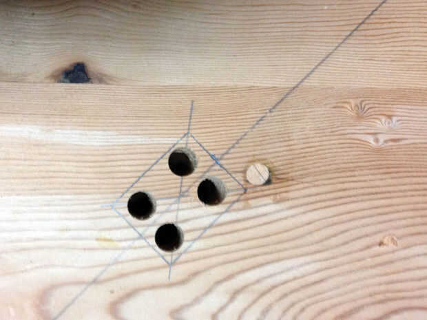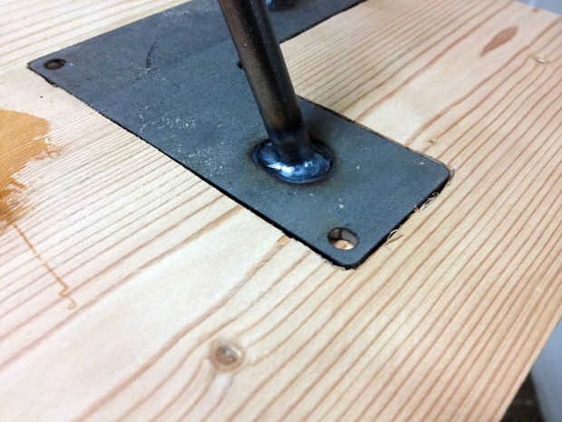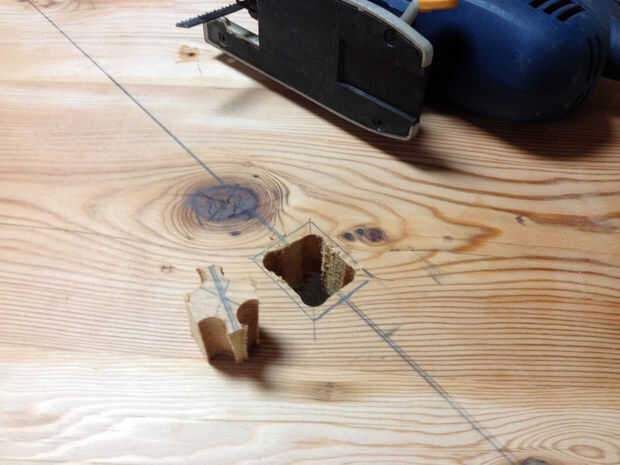 Voltea la mesa. Usted necesitará hacer 4 hendiduras para que las patas de la horquilla van a quedar a la parte inferior y cuatro mortajas para las piernas ellos mismos. La colocación de estas dos cosas variará según las dimensiones de las horquillas de particular que usted pide.