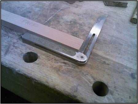 Coloque el calibrador de biselado en el extremo de la camilla y marque el ángulo.