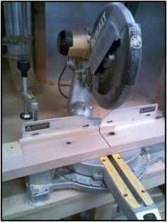 Los extremos de los separadores deben cortarse en un ángulo de 7 grados para que coincida con la forma cónica de la pierna. Utilice el conjunto de Sierra de inglete en 7 grados para cortar los tirantes.