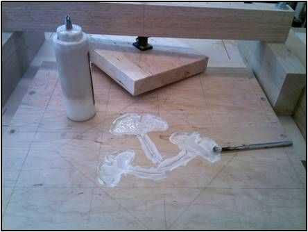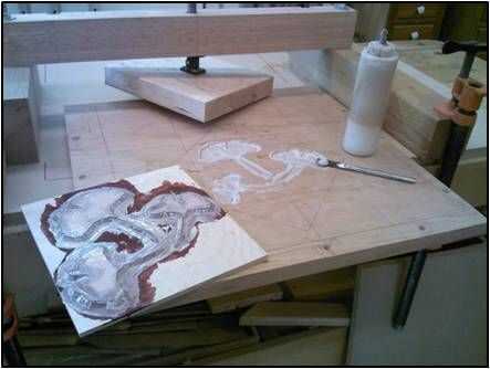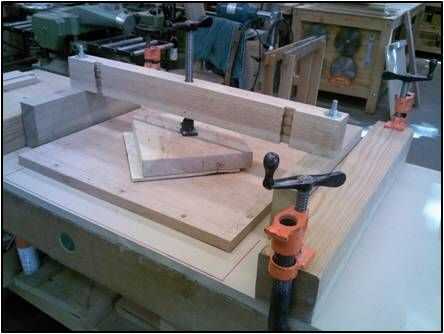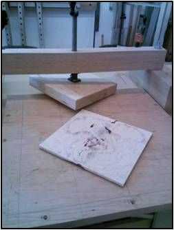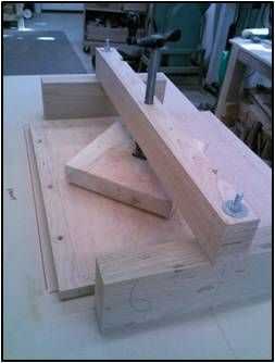 Ya que la incrustación se colocó en el centro de la parte 18 ½" superior (20" antes de recortar) necesitaba un método de sujeción de la incrustación para ejercer presión uniforme así que construí una prensa de sujeción.